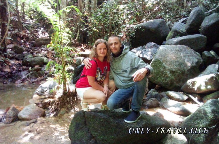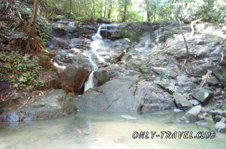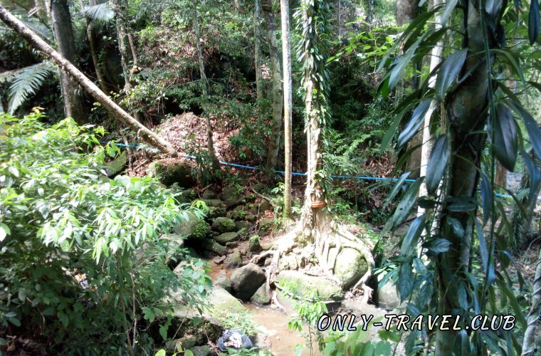 Полноводного водопада всё нет и нет, но не теряем надежды и идём дальше. Когда остаётся пройти совсем немного, понимаем, что лестницы остались позади и теперь нам придётся идти через джунгли, минуя заросли травы, камни и деревья, ветви которых свисают прямо над нашими головами.