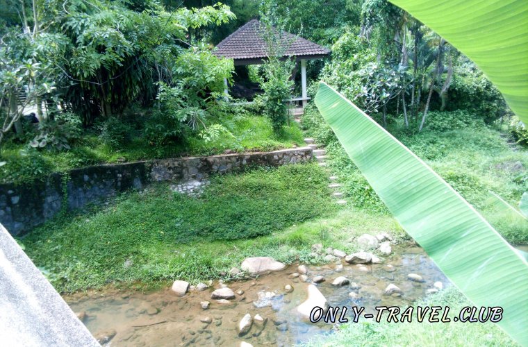 Возле входа на территорию парка, где расположен водопад, есть бесплатная парковка для автомобилей и мотобайков. Мы оставили свой байк и пошли на территорию, при входе есть небольшой мостик, под ним протекает ручей.