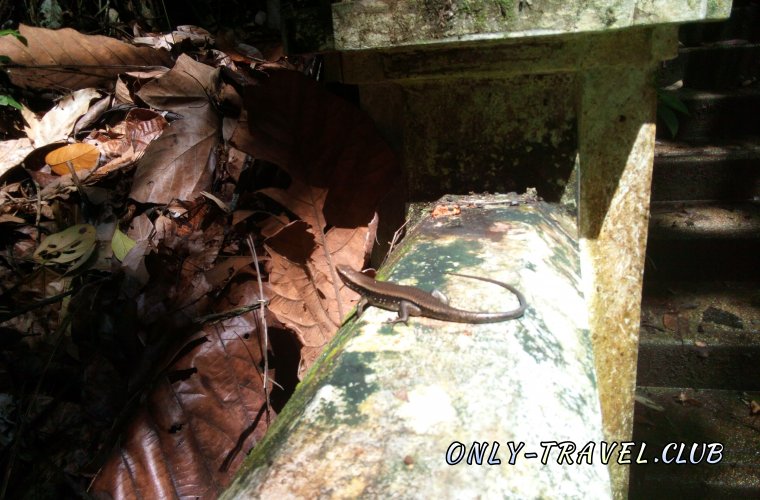 Но мы то были уверены в том, что на самом верху, нас ждёт что-то лучше и гораздо красивее, мы пошли выше. По дороге есть на что посмотреть, очень красивая природа, пальмы, обвитые лианами деревья, бабочки парящие в воздухе, увидели даже среднего размера ящерицу.