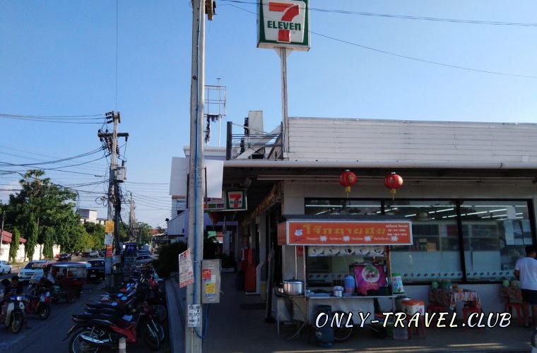 Либо есть вариант магазин 7 Eleven - это похоже самая популярная сеть магазинов в Таиланде, они находятся практически на каждом углу, в них есть витрины с уже готовой едой, при покупке на кассе вам подогреют в микроволновой печи купленную вами еду, если вам это конечно будет нужно, а также дадут бесплатно при необходимости ложки и вилки. Также там можно купить разнообразные напитки, молочные продукты, хлеб, сладости и всё что необходимо в повседневной жизни.