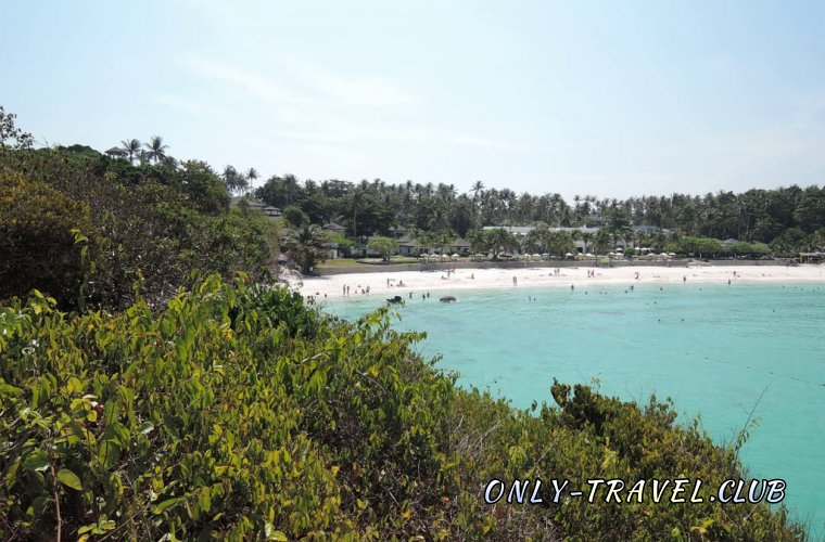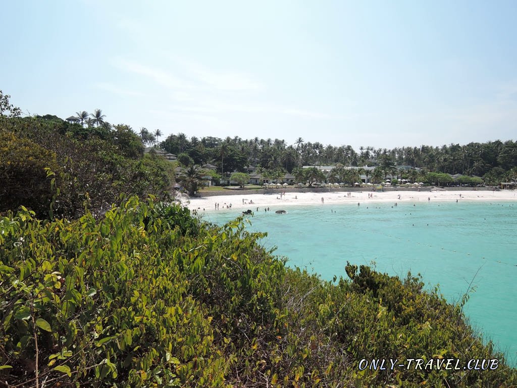 Сначала было решено идти на смотровую площадку и посмотреть на главный пляж острова с высоты. Пройти на неё нужно через кафе, которое находится на возвышенности, там есть благоустроенная лестница, идти очень удобно.