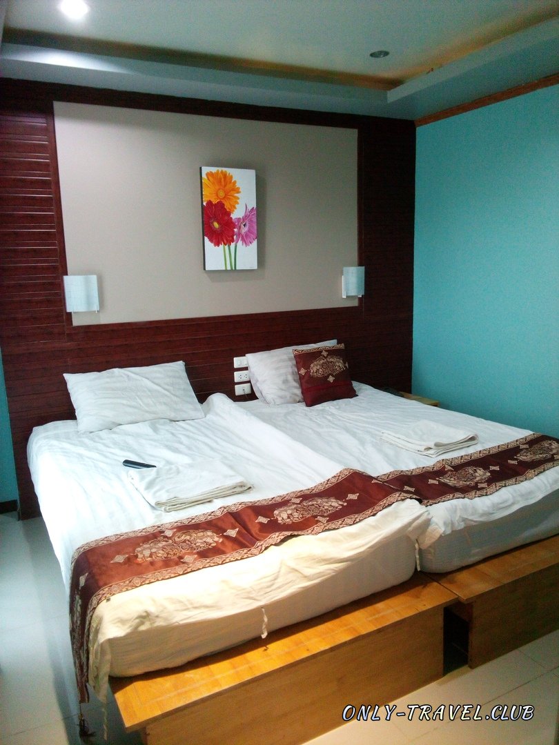 Этот отель мы бронировали из дома, нам понравилось сразу его местоположение. Находится в районе Патонг, рядом с торговым центром Jungceylon и ночным рынком DAHOOD. Цена при бронировании на сайте booking.com также привлекла нас, за 7 ночей получилось 57$, но мы воспользовались ссылками на скидку и сэкономили.