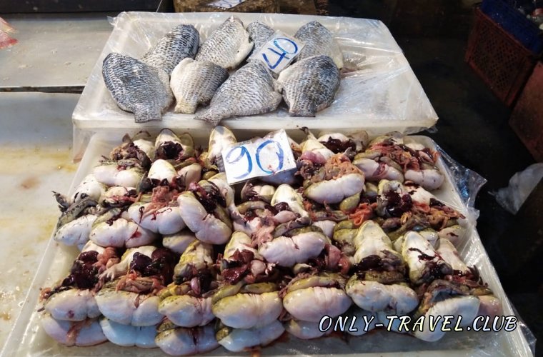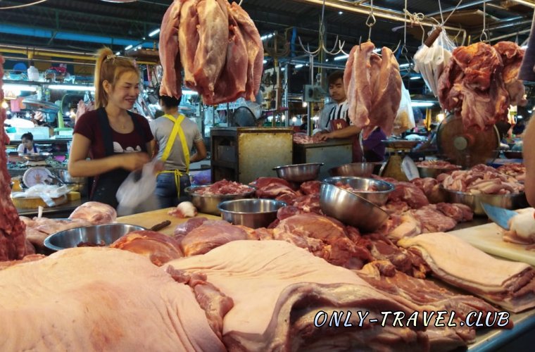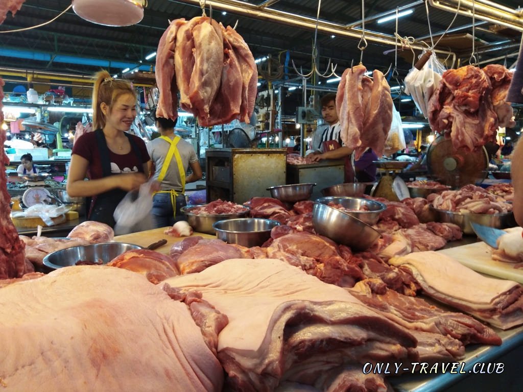 Чего здесь только не встретишь, начиная от мяса и заканчивая бананами. Мы прошлись по всему рынку и записали о нём видео, которое можно посмотреть здесь.Сейчас пару фотографий о том, что здесь продают и сколько стоит: