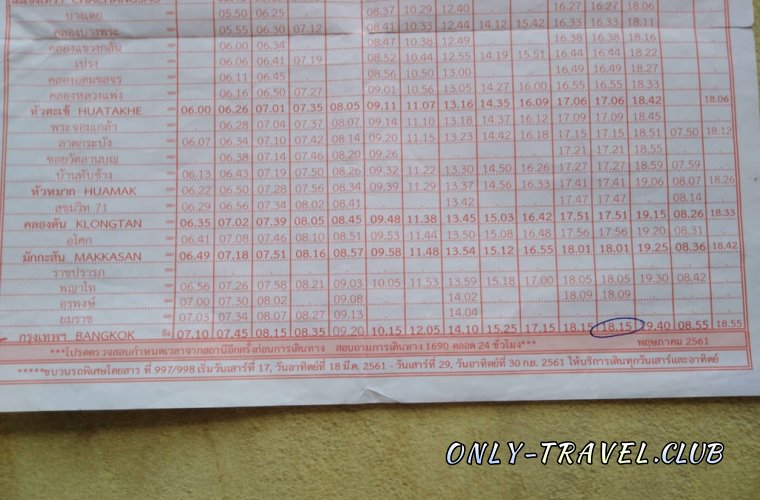 Автовокзал МоЧит (Morchit) - с автовокзала отходят автобусы с кондиционером. Цена билета 129 бат (4.19$) на автобусе и 190 бат (6.17$) минибас. Время в пути 2.5 - 3 часа.