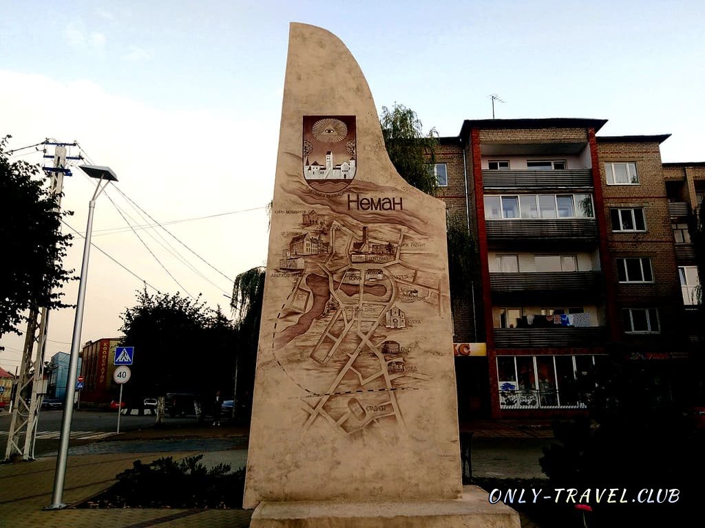 Город более чем компактный, как и во всех небольших городах по центру проходит главное шоссе, разделяющее местность на две половины. В Немане есть главная городская площадь с видом на немецкие колоритные строения, парк с озером, а также не многочисленные достопримечательности.